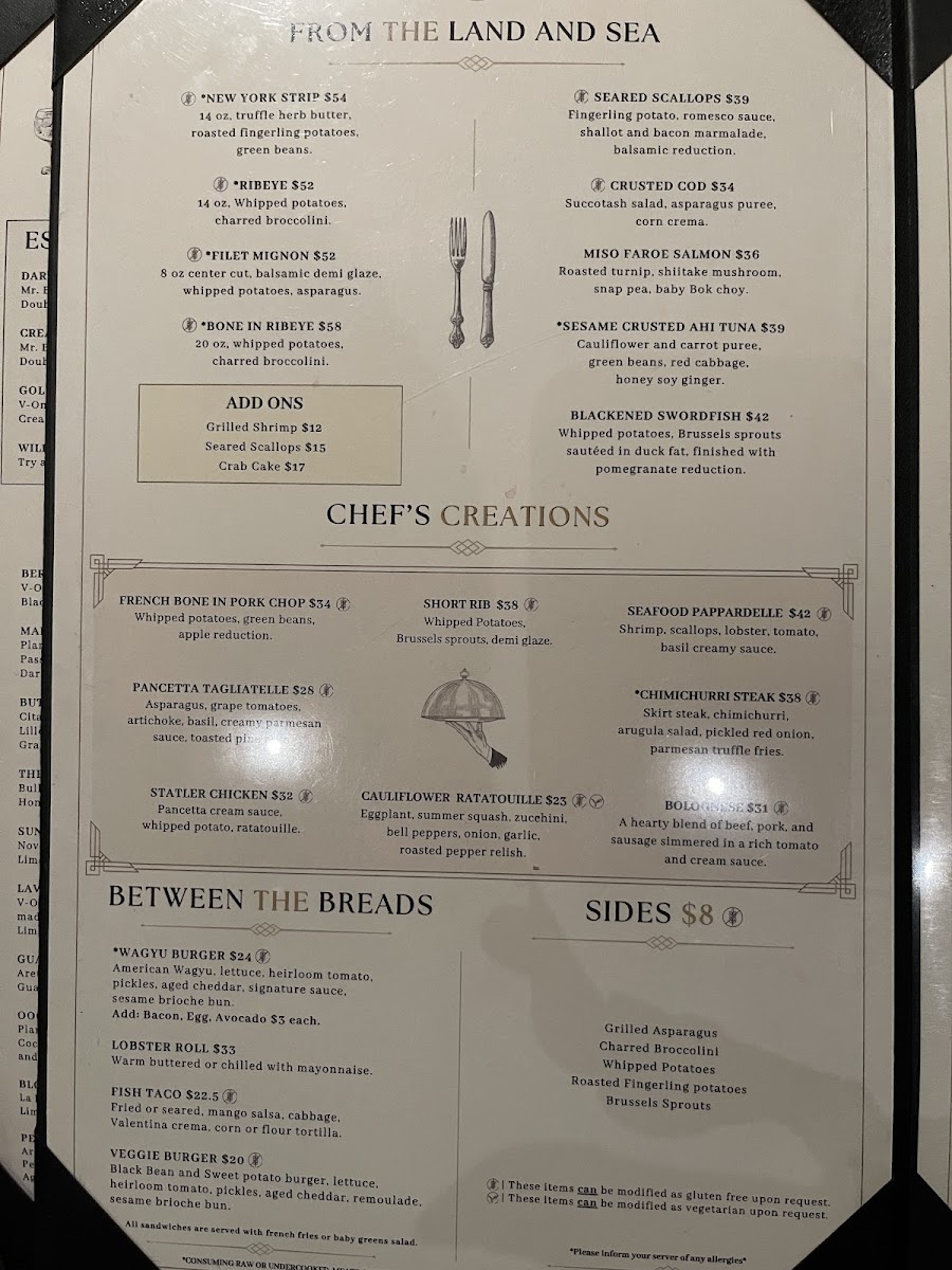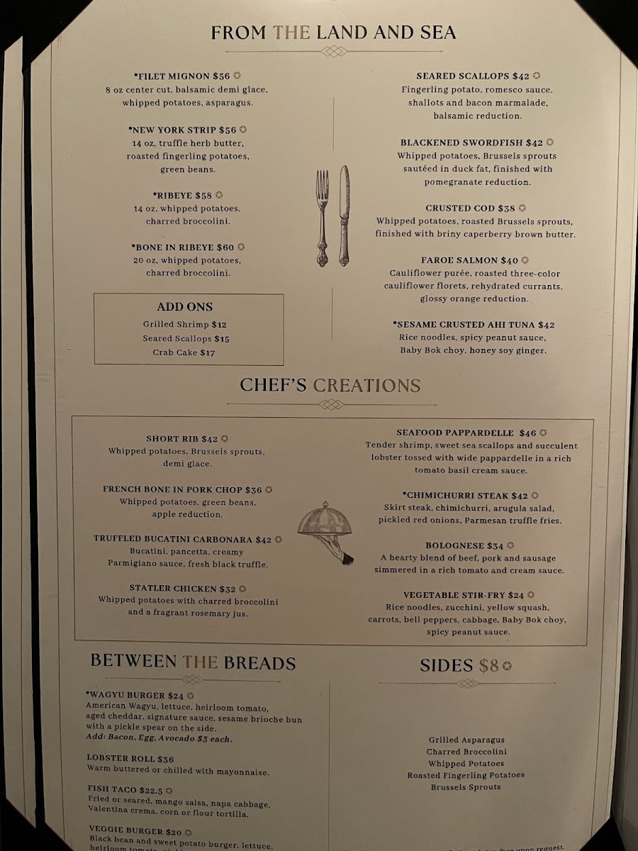 14 oz cut, truffle herb butter, roasted fingerling potatoes, green beans.